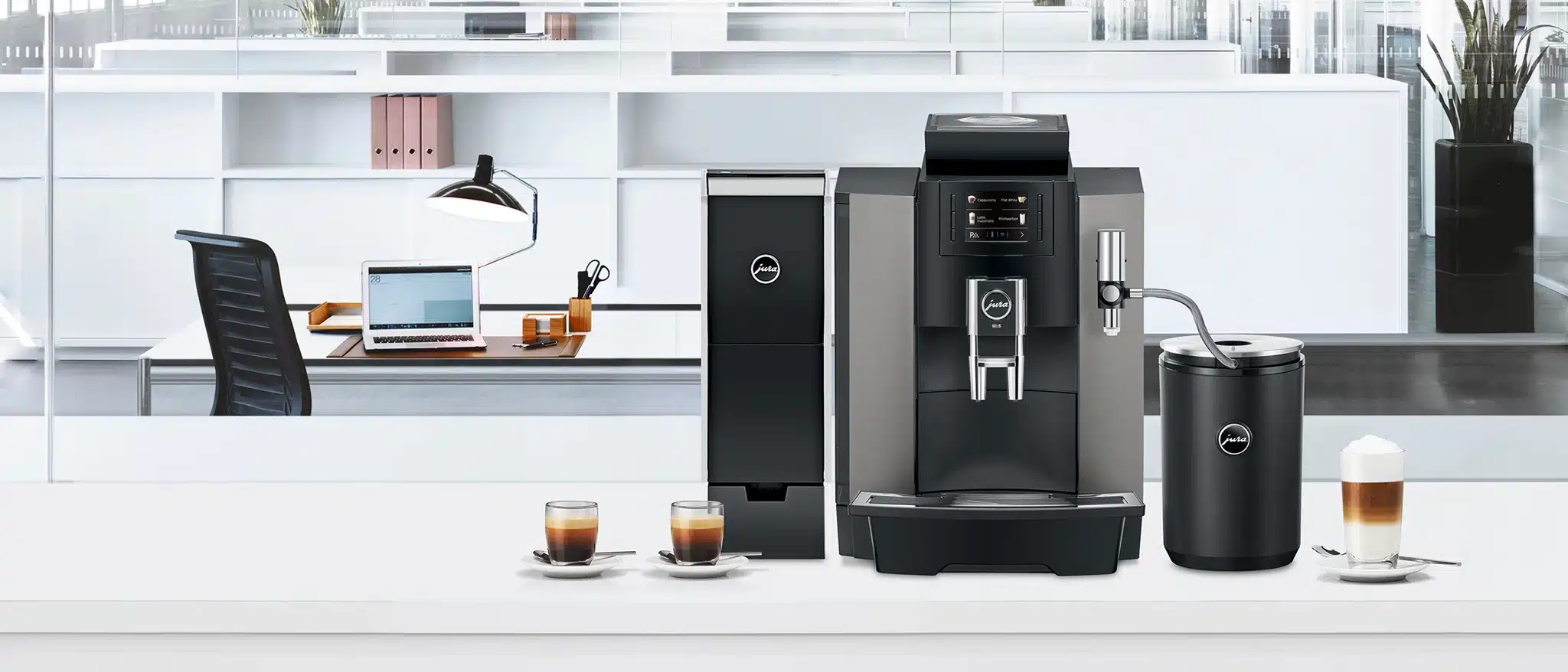 Kaffe styrker kreativitet, fremmer kommunikasjon, og øker velvære. Derfor har JURA utviklet «plug-and-play»-maskinene i WE-serien for å skape stilfull kaffenytelse på arbeidsplassen, også for mindre virksomheter.